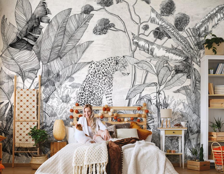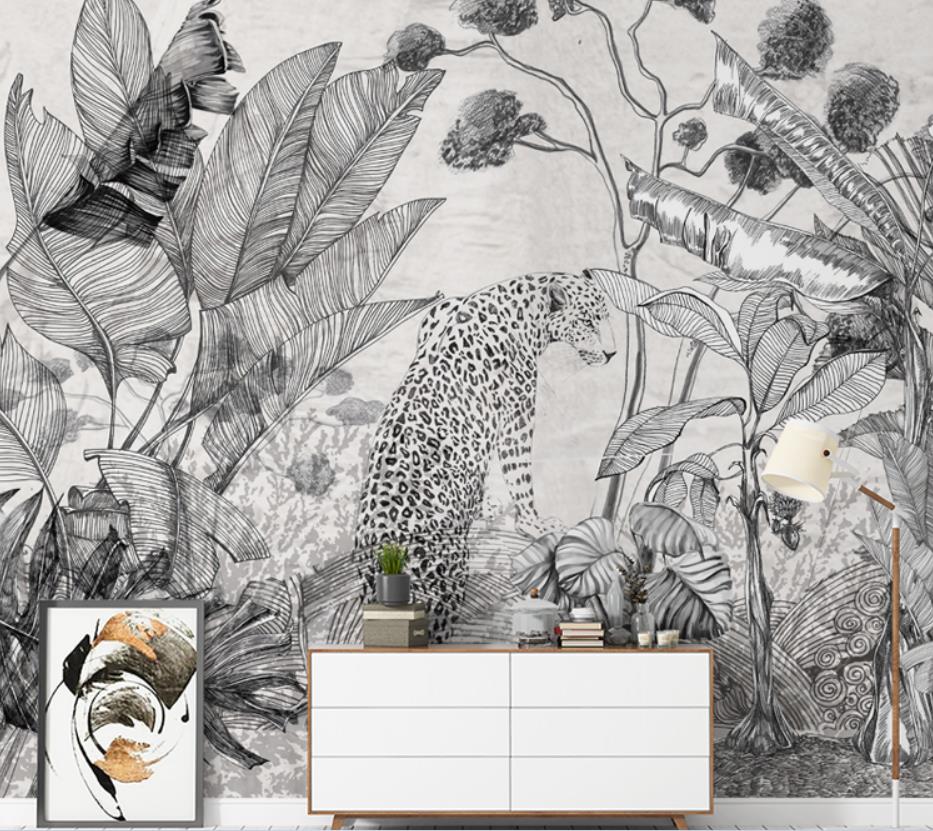 Southeast Asian tropical rain forest of black and white leopard plants wallpaper