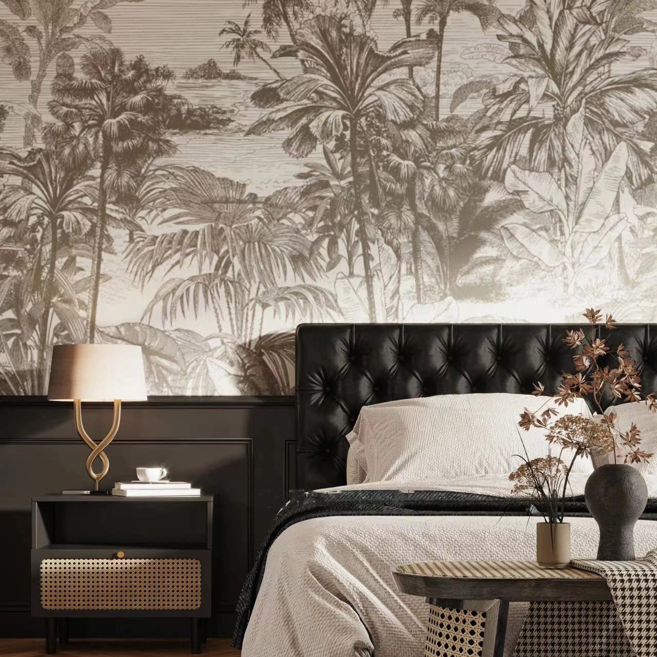 Tropical rainforest line-drawing forest animal mural wallpaper