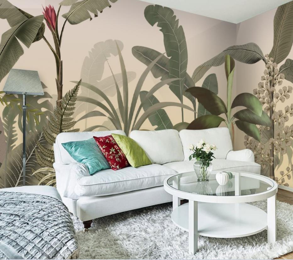 The green wallpaper rainforest restaurant wallpaper murals murals background of southeast Asia hotel