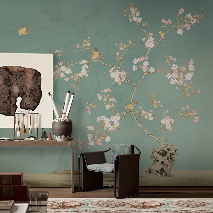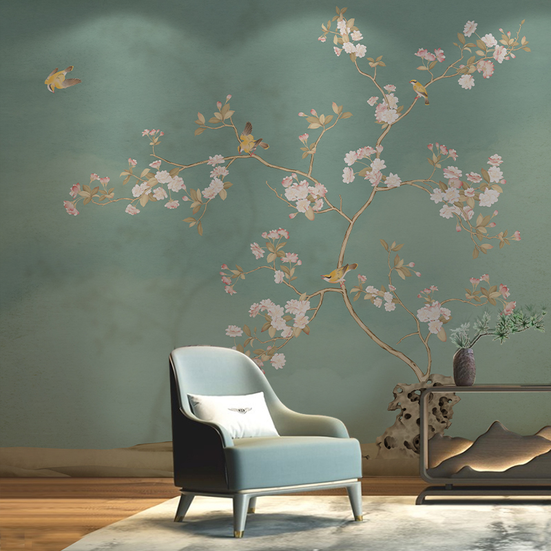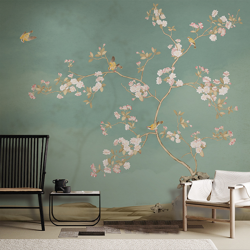 Chinese flowering crabapple flowers quietly elegant artistic conception bedroom a sitting room background wall mural cloth custom