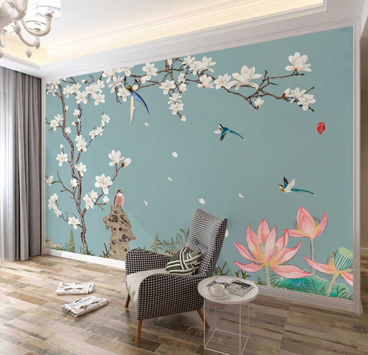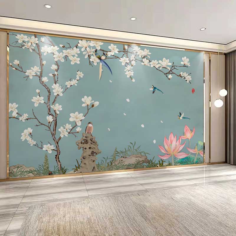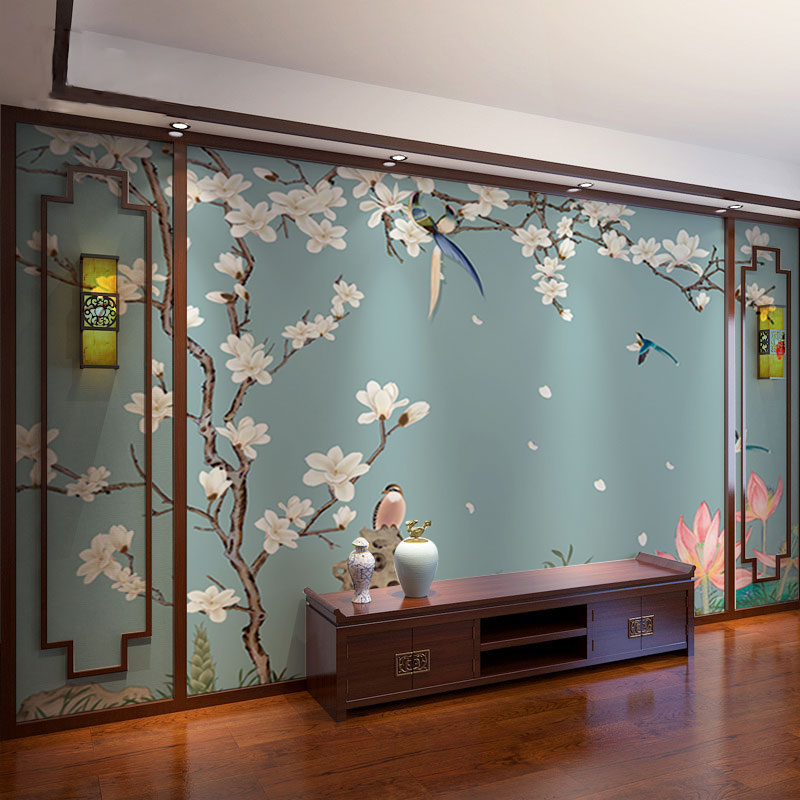 Chinese TV setting wall cloth, film and television wall painting decorative painting of flowers and custom wallpaper seamless sitting room wallpaper