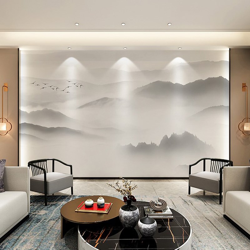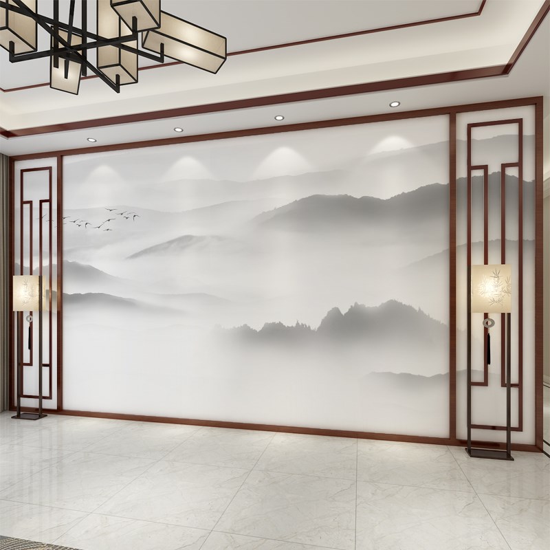 New Chinese style bird ink landscape sofa bedroom hotel background wallpaper wallpaper