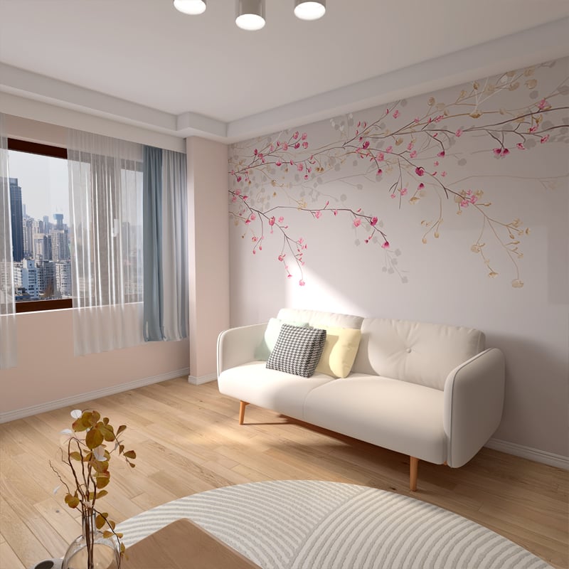 After you install the part 1 mural, then align the part 2 mural with the part 1 mural installed on the wall and paste the part 2 mural, then cut off the overlap of the two panels with knife and mural. Peel off the cut part and level off surface with a scraper.