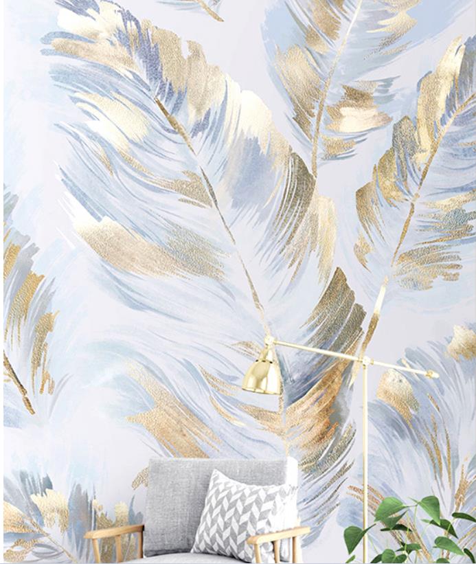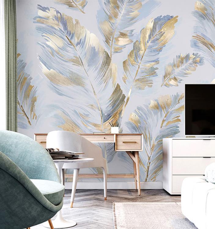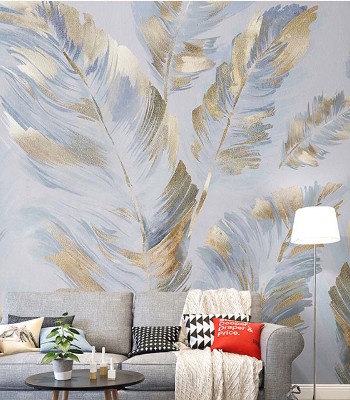 Contemporary and contracted sitting room TV wall mural wallpaper feathers