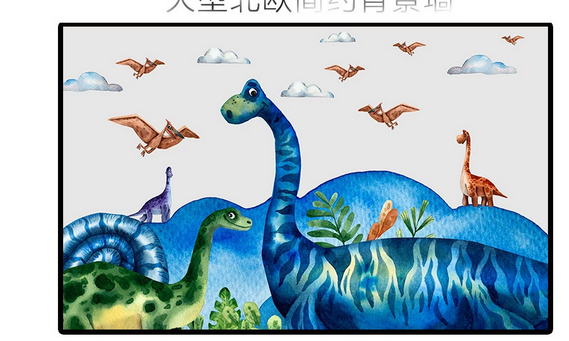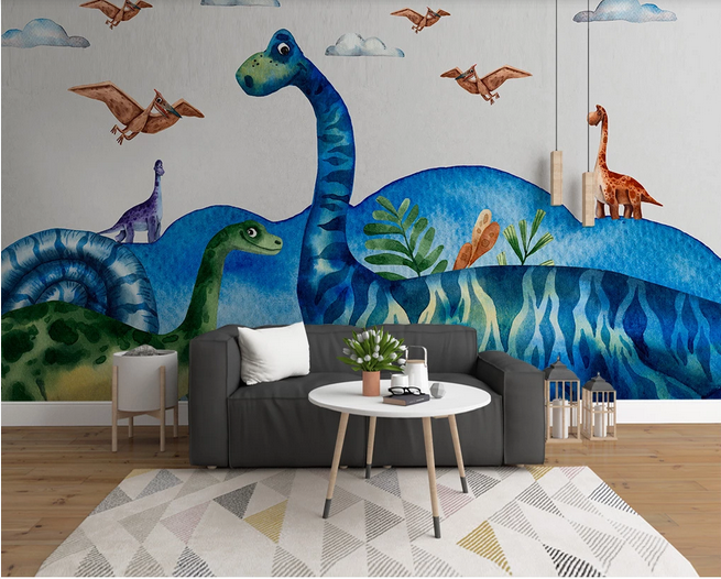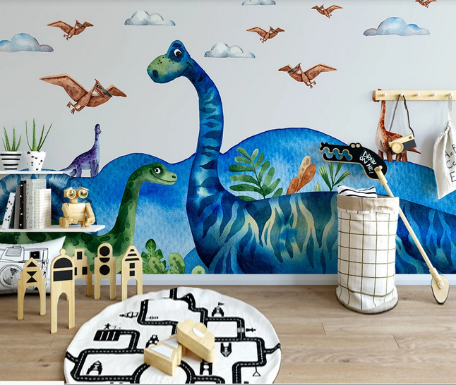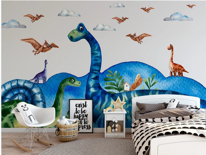 Cartoon Two Big Dinosaurs Nursery Wallpaper, Numbers of Dinosaurs Kids' Room Baby Girls' Room Children's Room Room Wall Murals