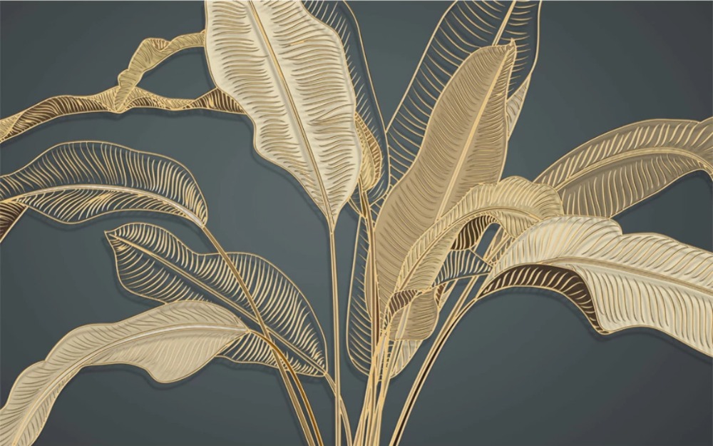 Custom Atmospheric Banana Leaf Light Luxury Golden Line Embossed TV Sofa Background Wall Murals