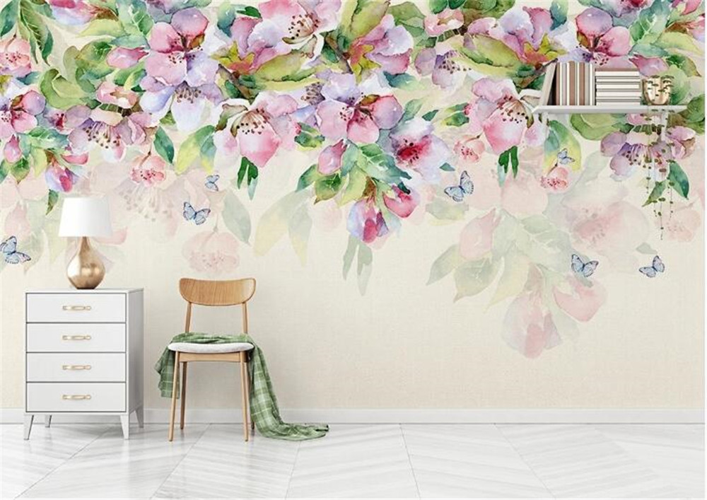 Custom Large Wallpaper Mural Romantic Watercolor Flower Green Leaf Nordic Background Wall Paper