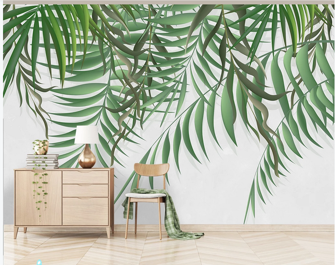 Watercolor Tropical Leaves Wallpaper, Watercolor Hanging Leaves Wall Murals for Living or Dinning Room