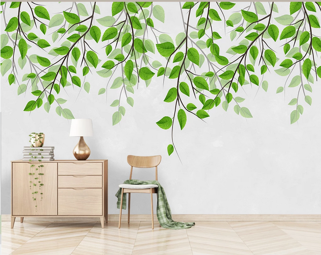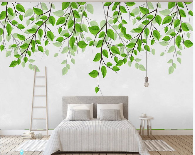 Watercolor Tropical Leaves Wallpaper, Watercolor Hanging Leaves Wall Murals for Living or Dinning Room