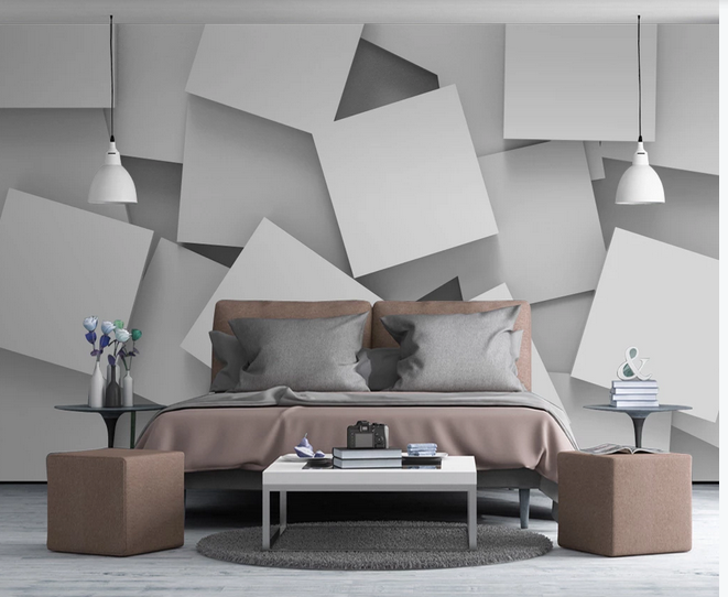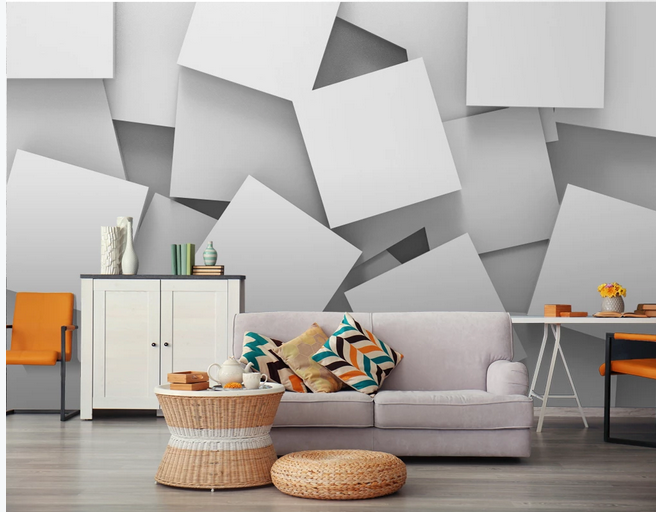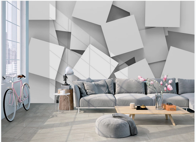 3D Space Wallpaper, Vintage 3D Block Wall Murals for Living or Dinning Room