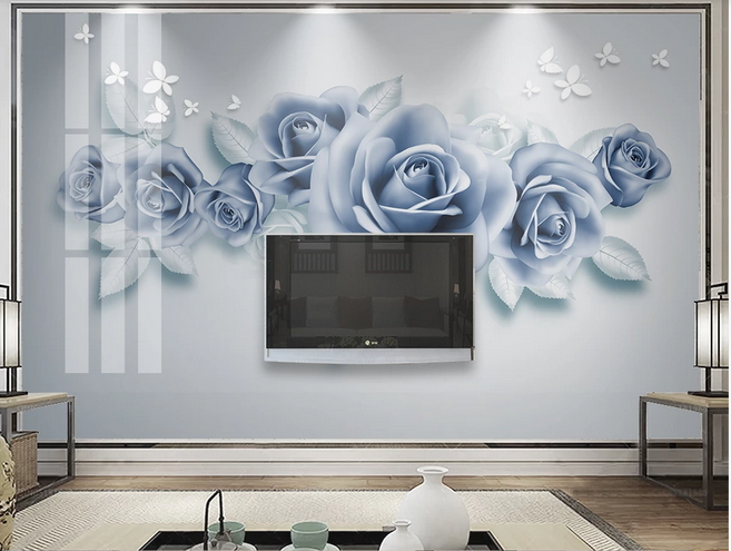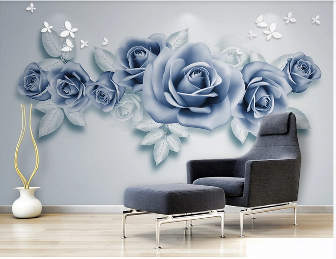 3D Blue Flower Wallpaper, Simple Big Flowers Wall Murals for Living or Dinning Room