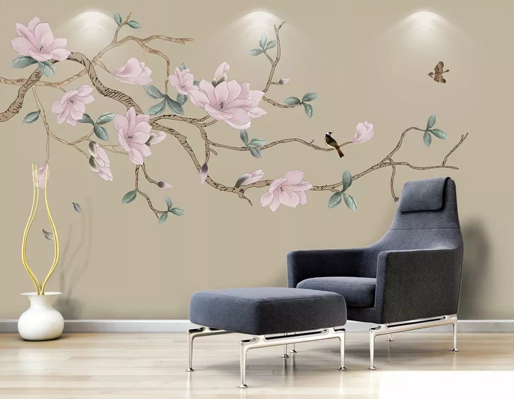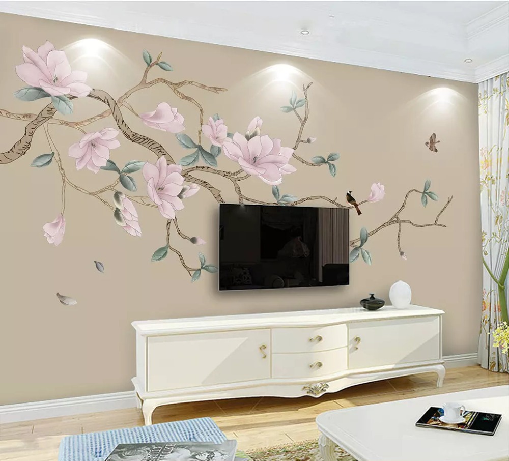 Customized Modern Chinese Style Hand-painted Magnolia Flower Ssofa TV Background Wall Murals