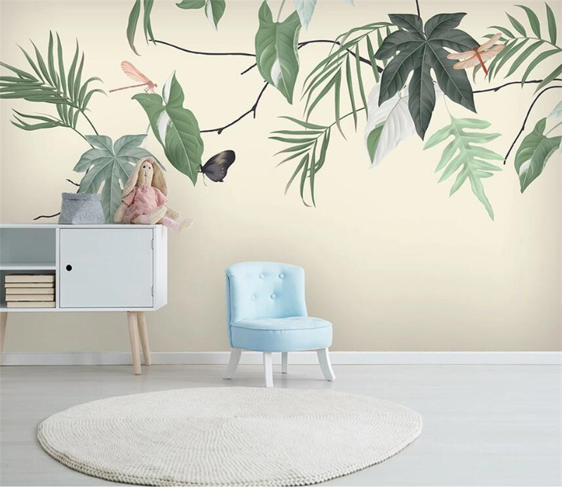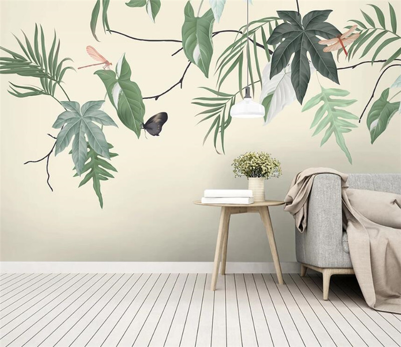 Custom Wallpaper Mural Custom Nordic Hand Painted Tropical Plants TV Background Wallpaper Mural