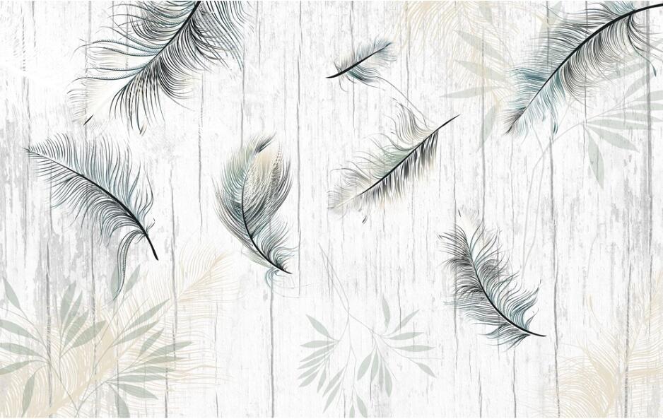 Custom Wallpaper Nordic Plant Leaf Feather Modern Minimalist Wood Grain Wood TV Background Wall Paper