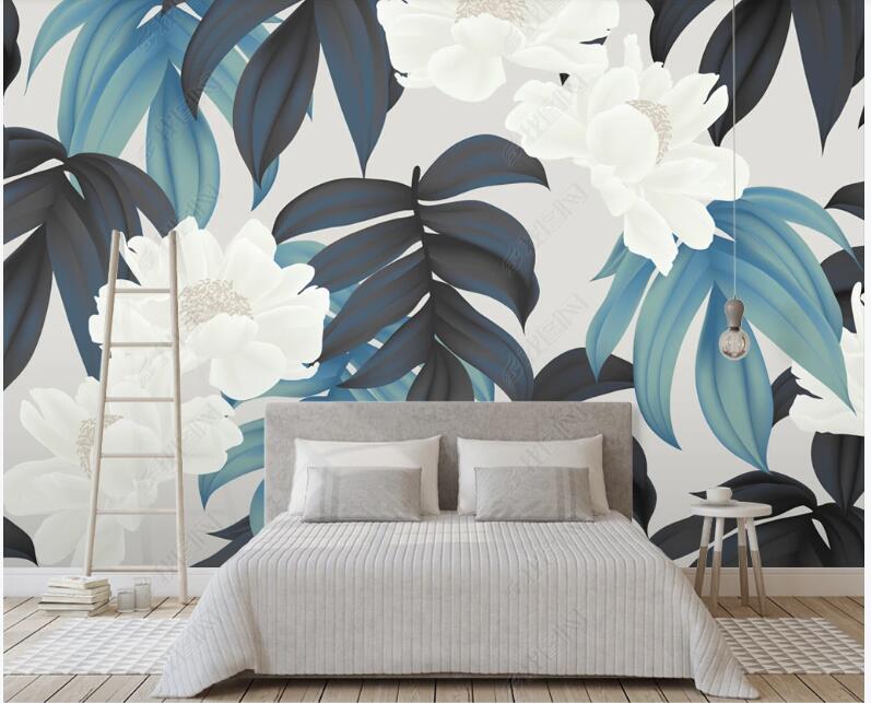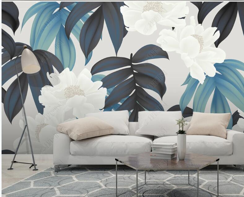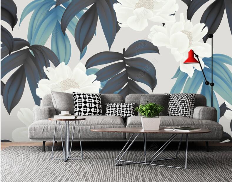 Watercolor Tropical Plants Leaves with Flowers Wallpaper Wall Mural, Tropical Leaves Plants with Flowers Wall Mural Wall Decor