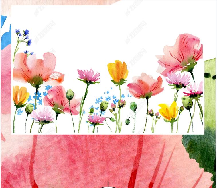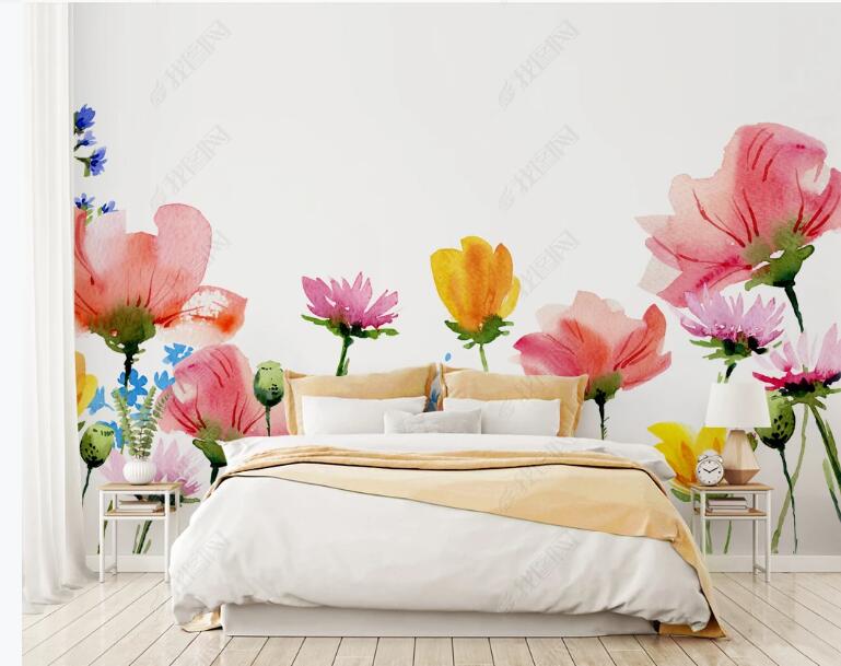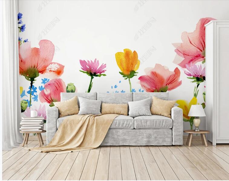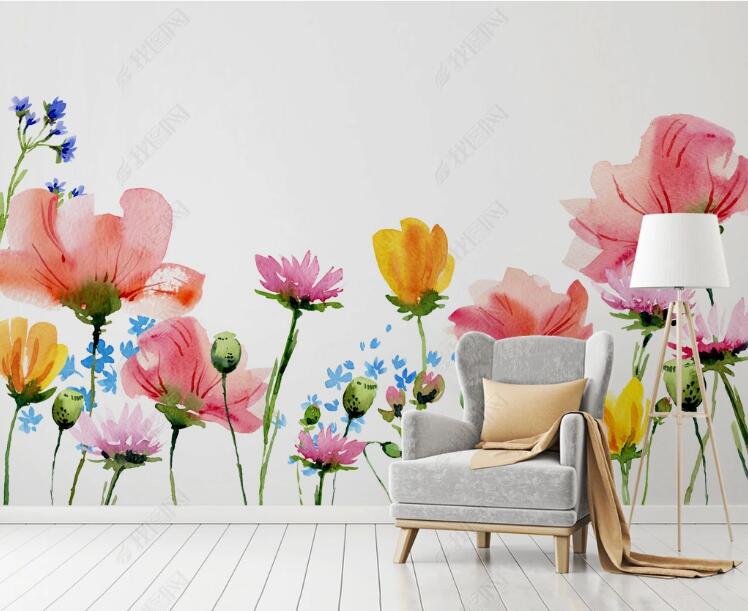 Watercolor Small Flowers Floral Wallpaper Wall Mural, Beautiful Red Yellow Flowers Floral Wall Mural wall Decor