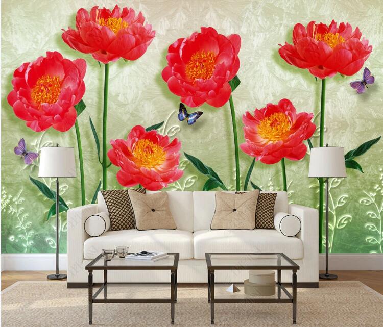 Oil Painting Red Flowers Floral Wallpaper Wall Mural, Beautiful Big Red Flowers Floral Wall Mural wall Decor
