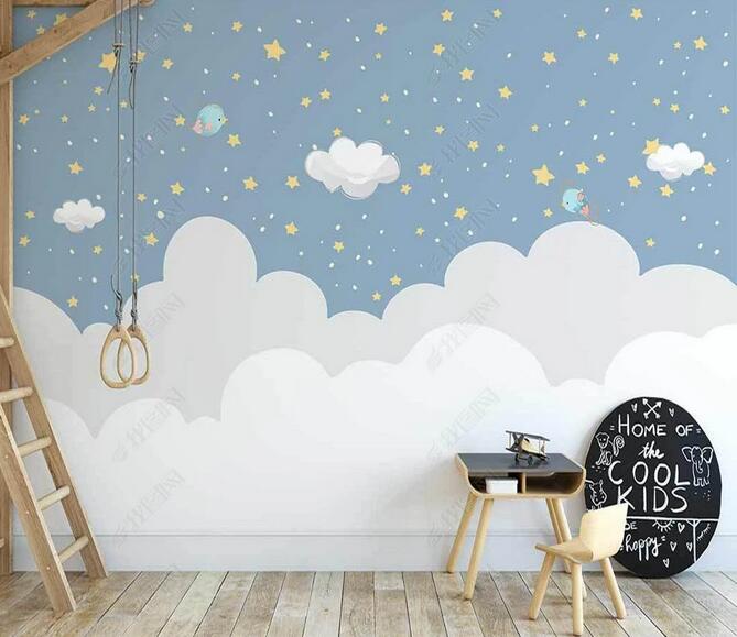 Stars Blue Skye Nursery Wallpaper Wall Mural, Clouds Stars Kids Children Room Wall mural Wall Decor