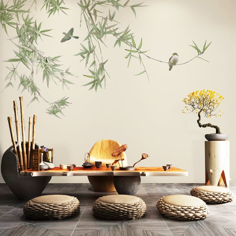 Chinese traditional Chinese realistic painting mural painting of flowers and bamboo sitting room the bedroom TV setting wall paper