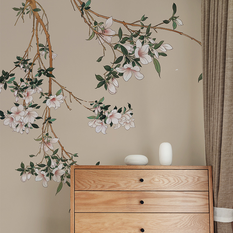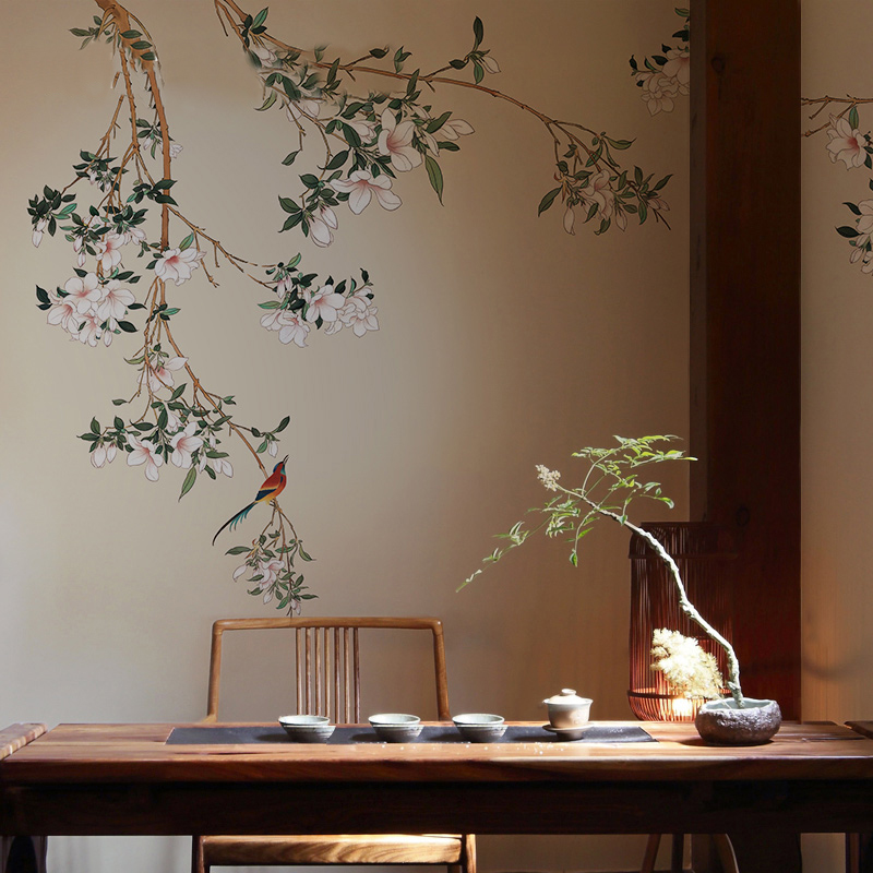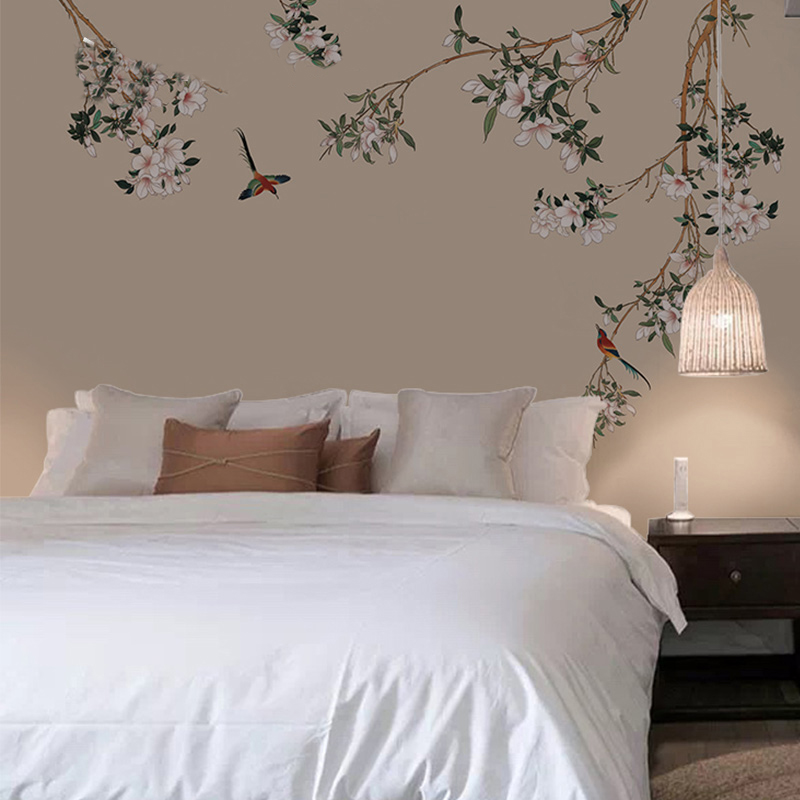 New Chinese style magnolia flowers and birds mural hotel bedroom TV setting wall paper wall murals of home stay facility