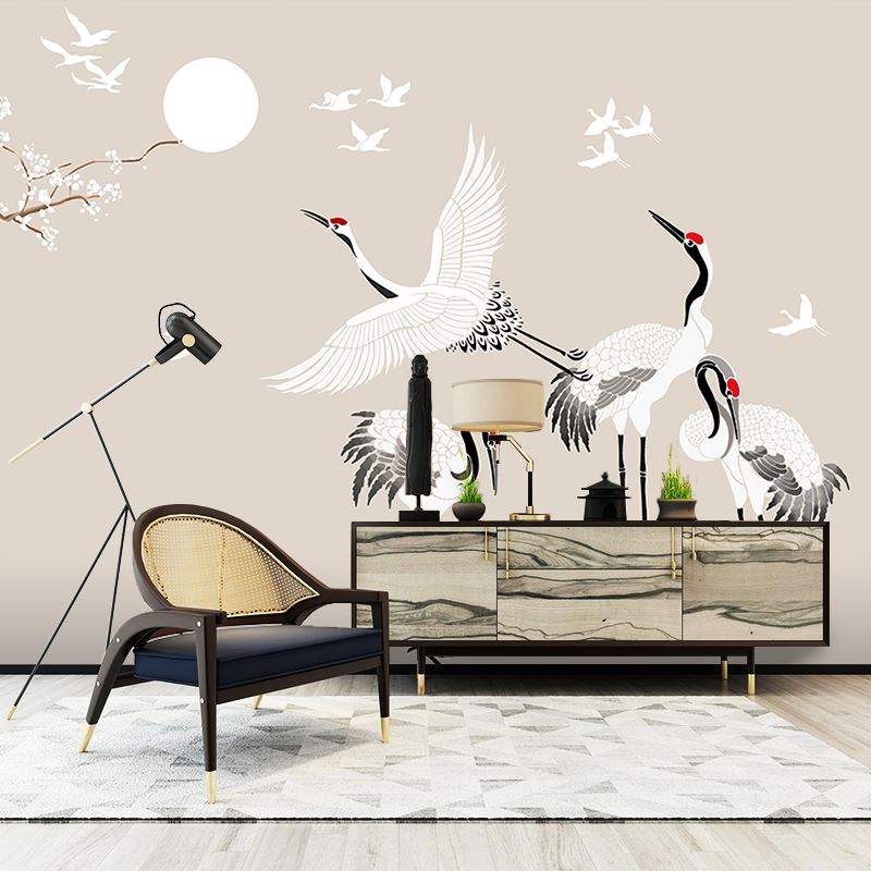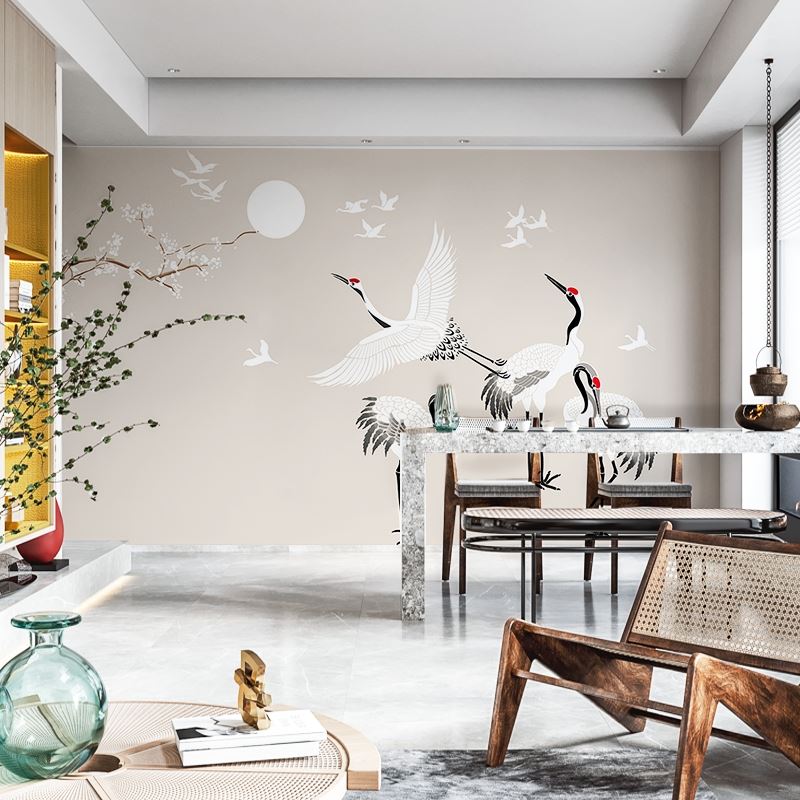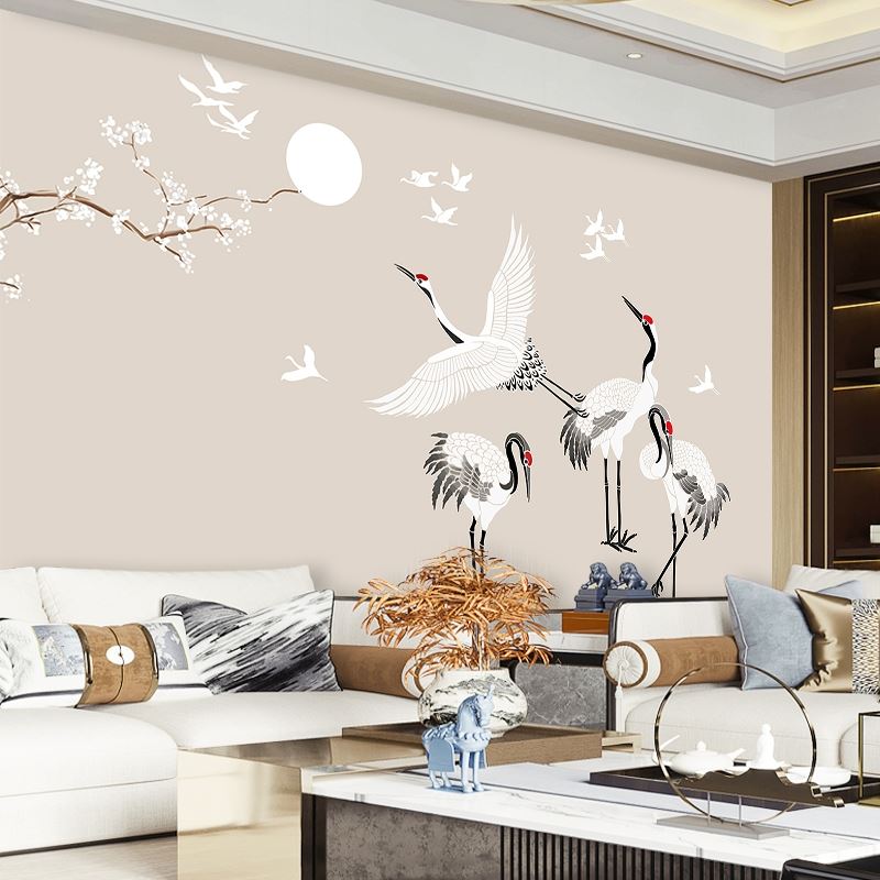 New Chinese style is contemporary and contracted crane plum TV setting wall paper sitting room sofa bed bedroom wallpaper murals