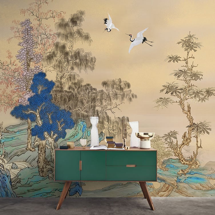 Chinese landscape fly hebi cloth study sitting room sofa tea house is decorated TV wall murals of bedroom the head of a bed