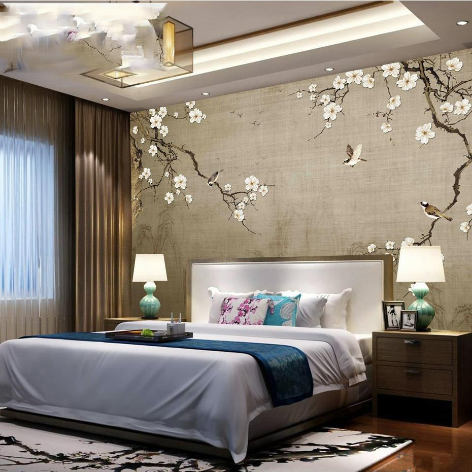 Chinese painting of flowers and the sitting room TV setting wall paper wall paper, film and television wall murals