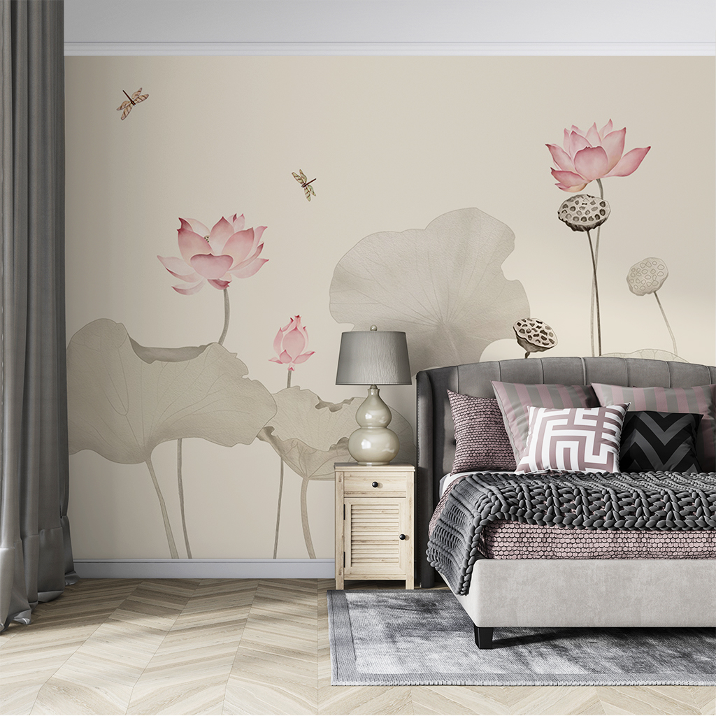New Chinese style TV wall lotus custom murals bedroom wallpaper sitting room TV setting wall paper