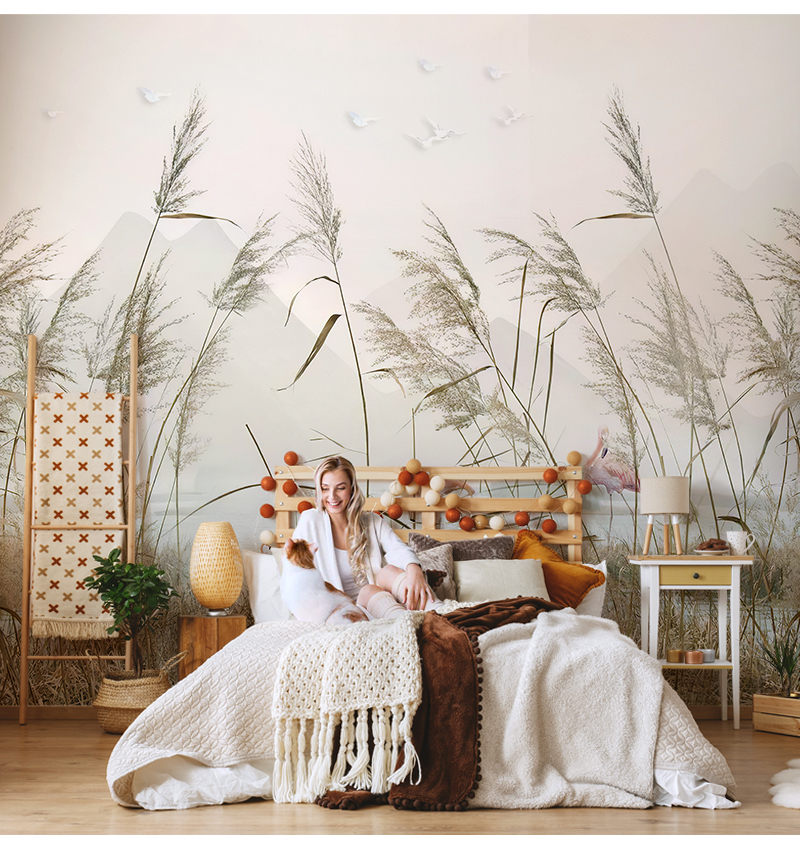 The Nordic landscape landscape oil painting abstract art reed grass cloth sitting room TV setting wall paper