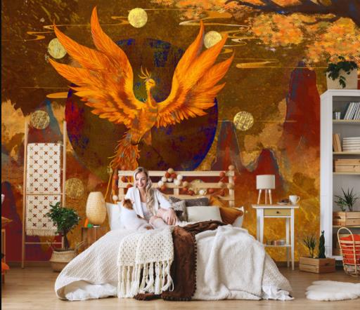 Chinese hand-painted abstract art god beast rosefinch wallpaper sitting room TV setting wall paper