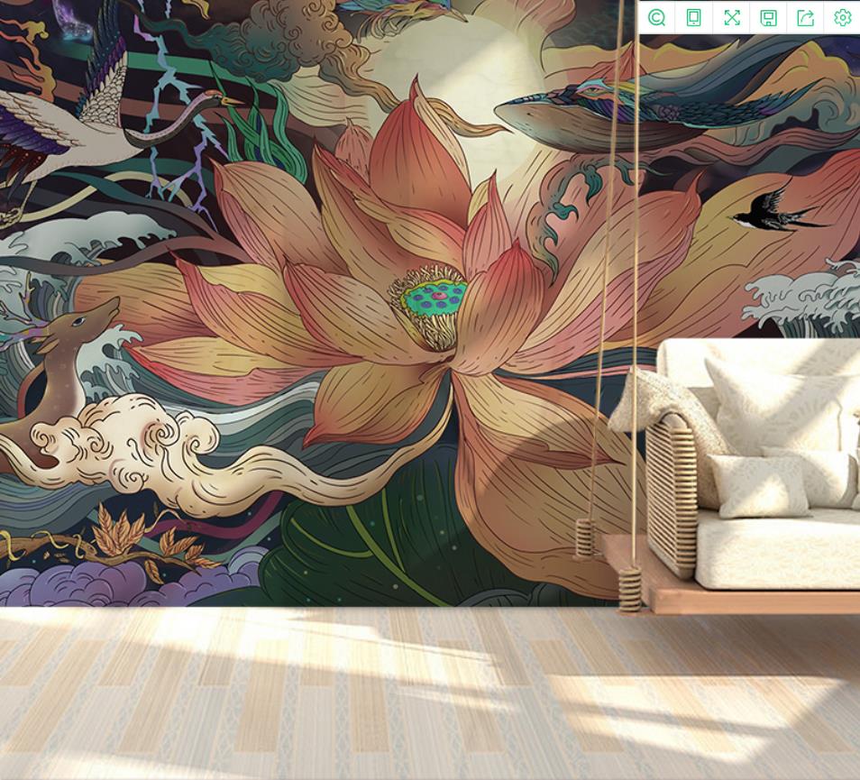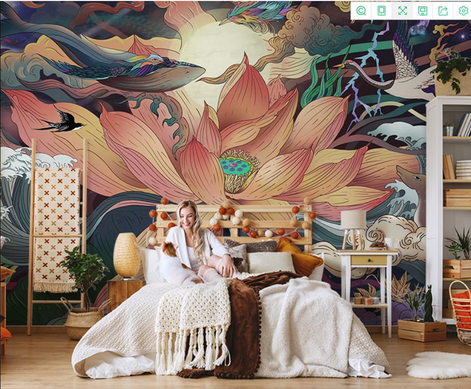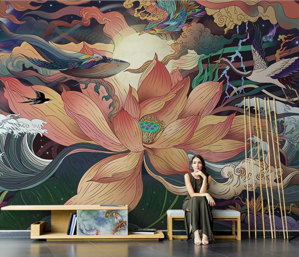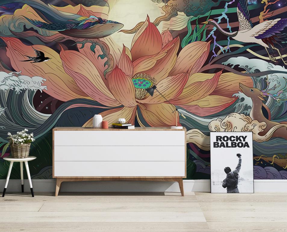 New Chinese style abstract lotus restoring ancient ways animals living room TV setting wall wallpaper beasts