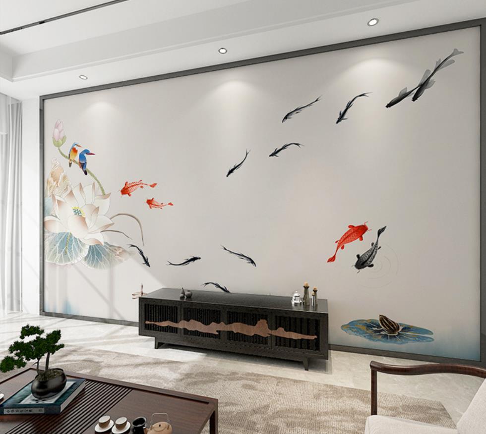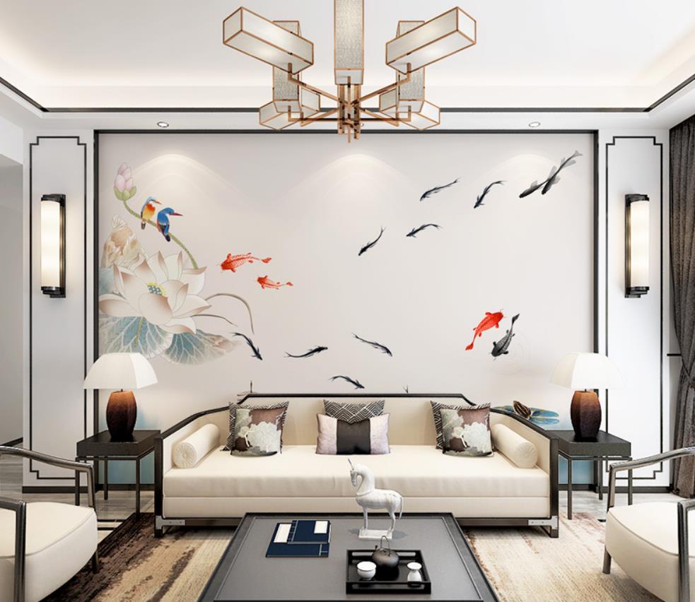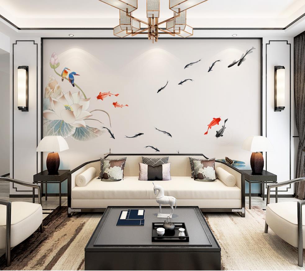 New Chinese style classical lotus sitting room sofa bedroom TV setting wall paper custom murals