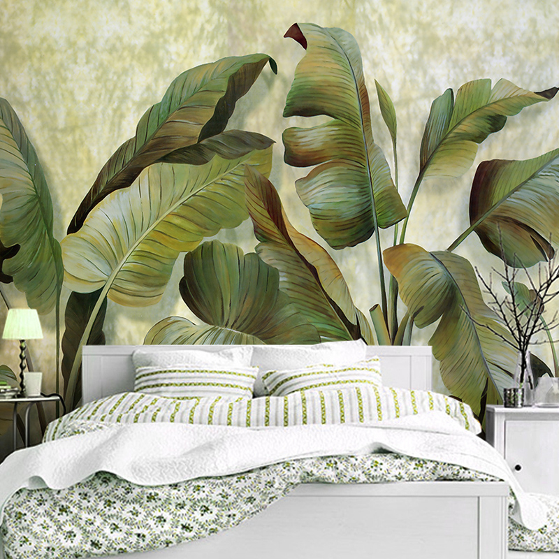 Southeast Asia style tropical rain forest green banana wallpaper background wall paper