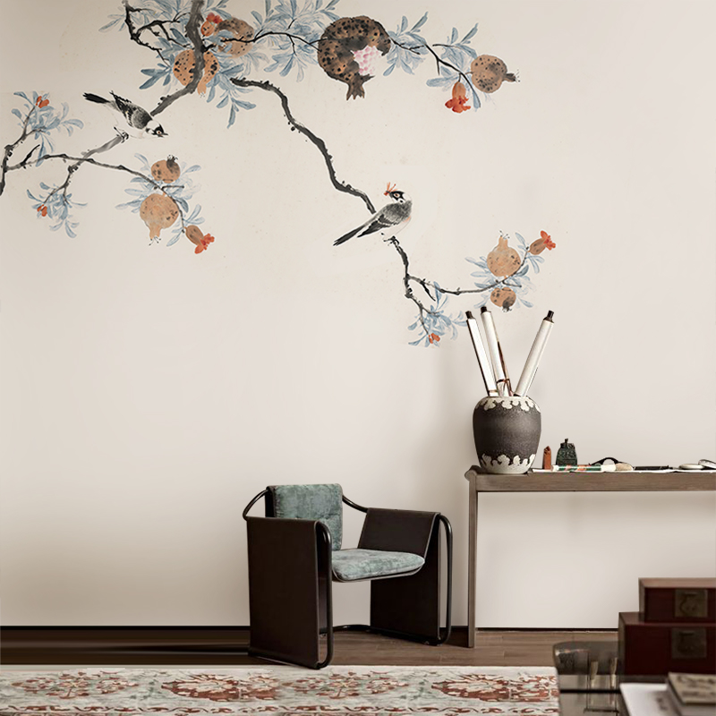 Chinese style pomegranate flowers and birds sitting room study bedroom wallpaper murals