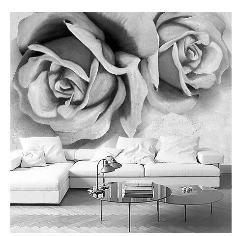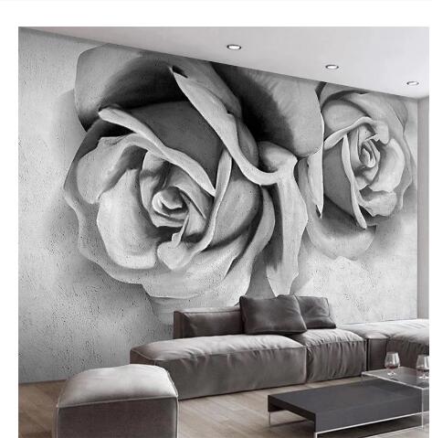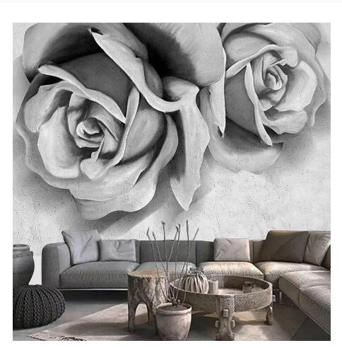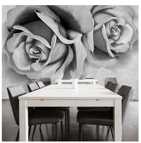 Modern Simple Cement Gray 3D Stereo Rose Flowers Living Room TV Sofa Bedroom Background Wallpaper Wall Murals