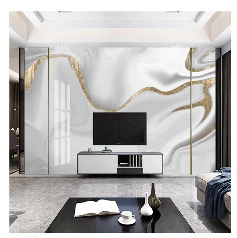 Golden Line Jazz White Marble Wallpaper Living Room TV Sofa Abstract Art Wallpaper Wall Murals