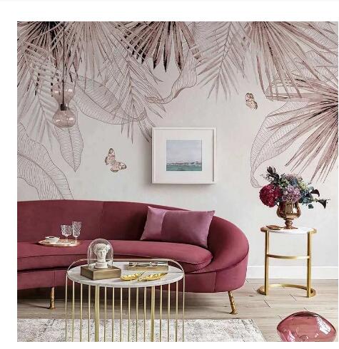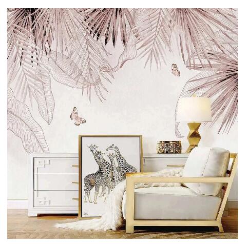 Tropical Plant Butterfly Leaves Wall Painting Living Room TV Sofa Bedroom Wallpaper Wall Murals