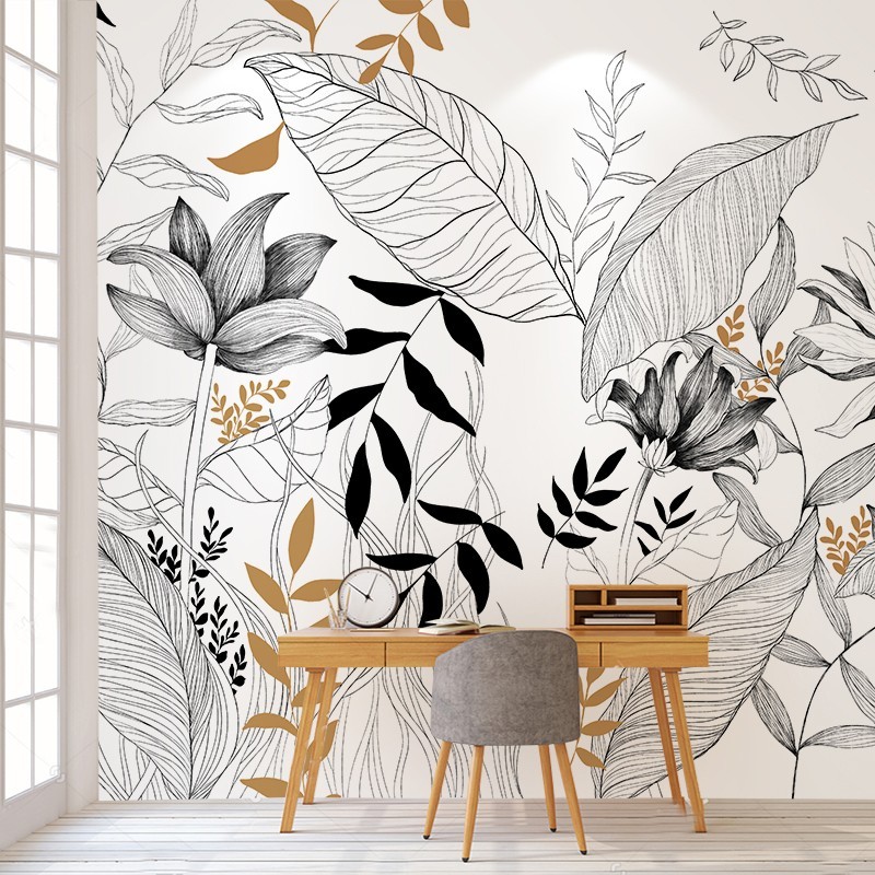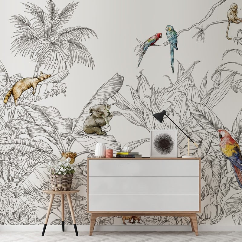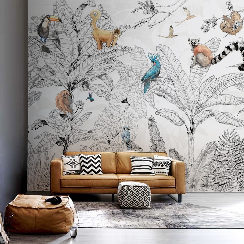 While tropical rainforest plants sitting room dining-room background cloth of wall paper wall murals