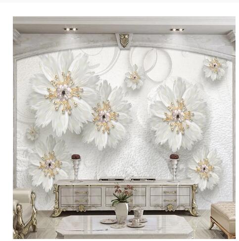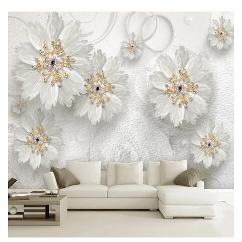 3D Stereo Jewelry White Flowers Wall Painting Living Room TV Sofa Bedroom Home Decor Wallpaper Wall Murals