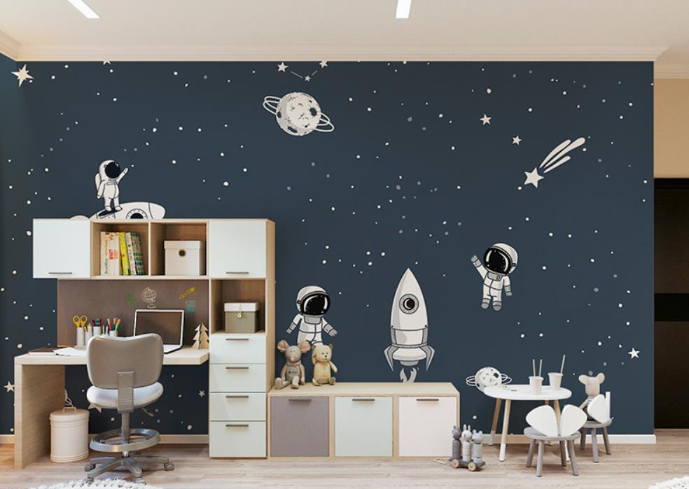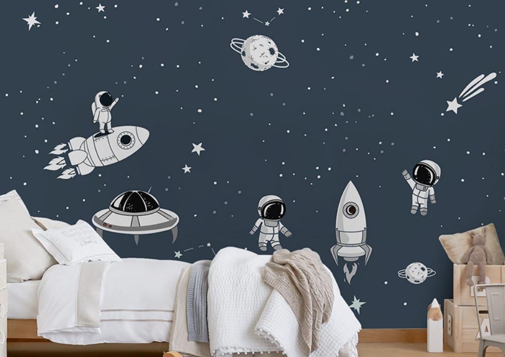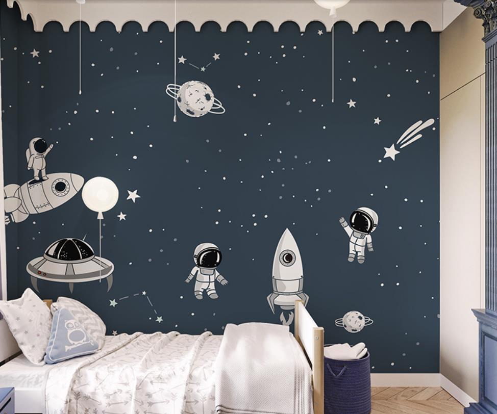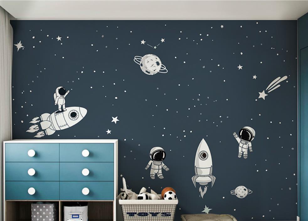 Astronauts cartoon star wall cloth wallpaper boy children room bedroom wallpaper murals