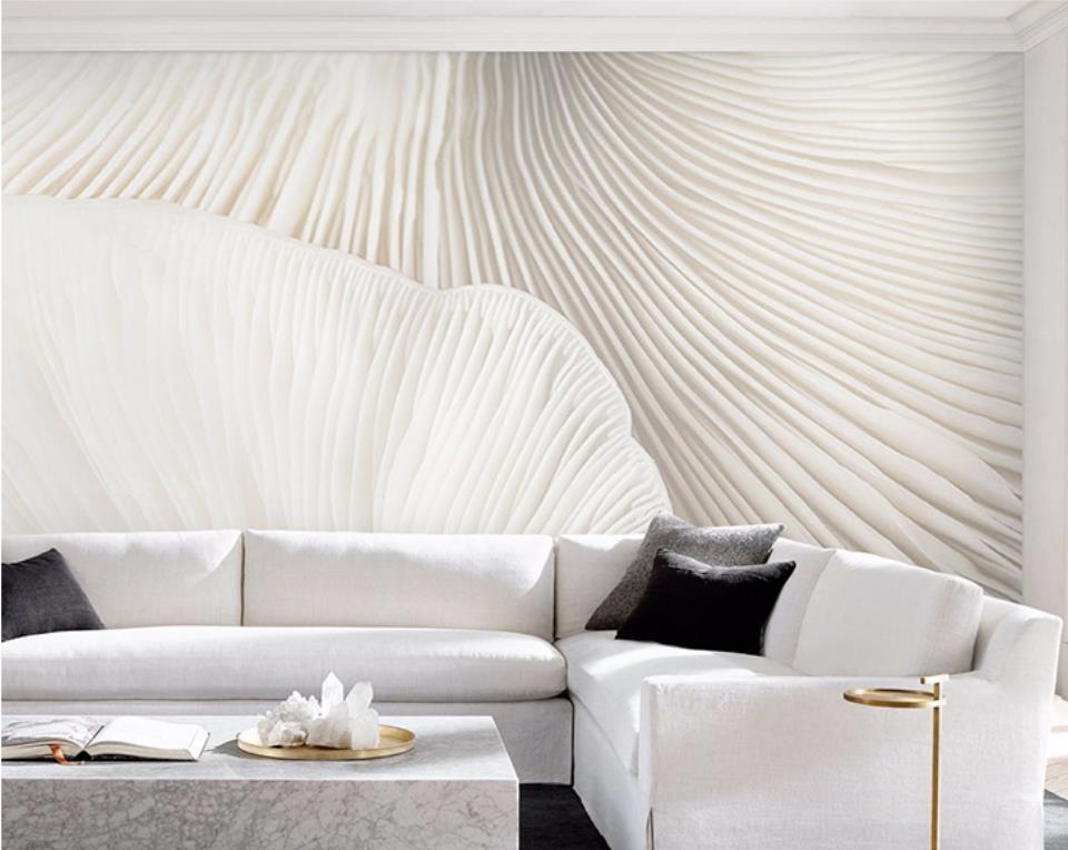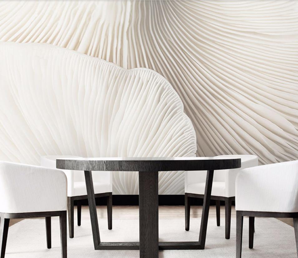 White wallpaper bedroom mushroom sitting room sofa background wall painting gills
