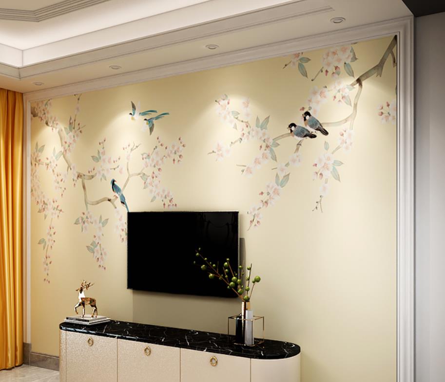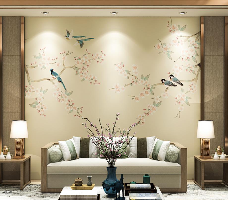 Chinese traditional Chinese realistic painting of flowers and birds sitting room bedroom wallpaper murals restaurant
