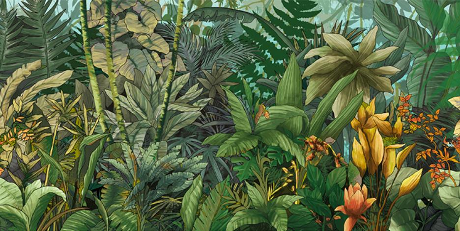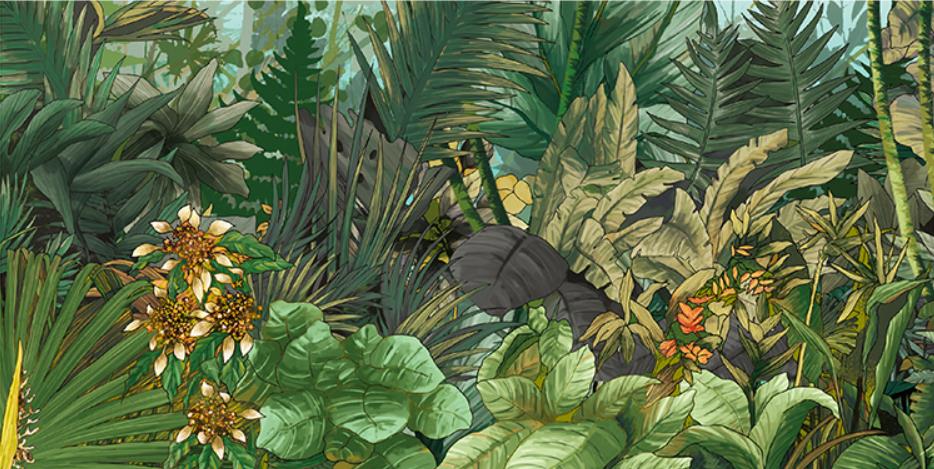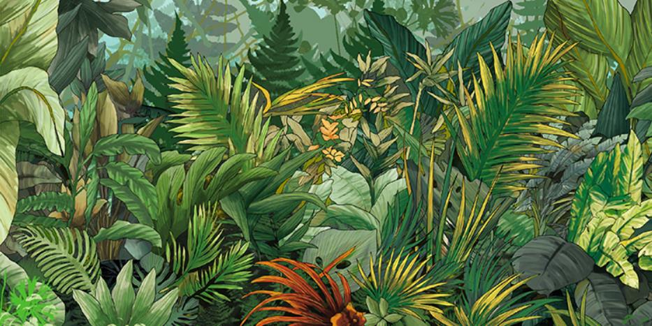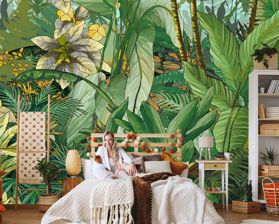 Hand-painted tropical plant leaf scenery wallpaper the sitting room TV setting wall paper mural wall cloth