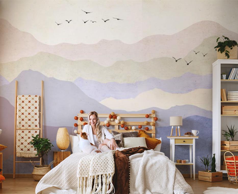 After you install the part 1 mural, then align the part 2 mural with the part 1 mural installed on the wall and paste the part 2 mural, then cut off the overlap of the two panels with knife and mural. Peel off the cut part and level off surface with a scraper.