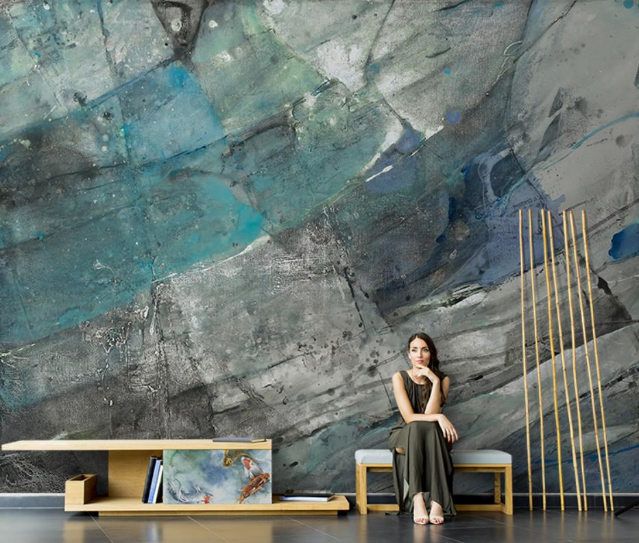 Hand painted abstract personality graffiti art murals sitting room TV setting wall paper