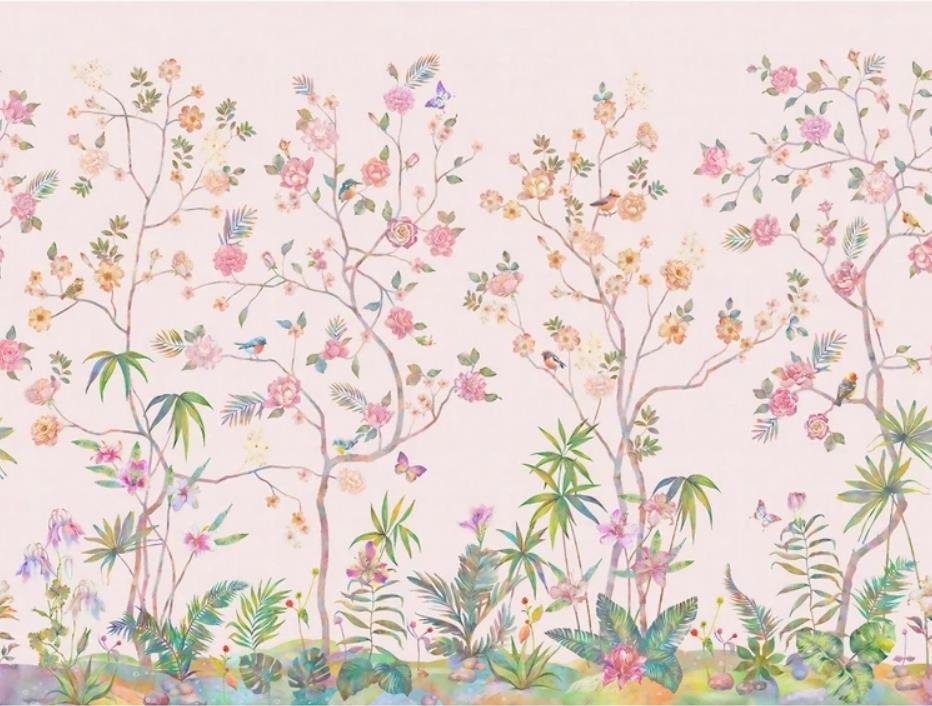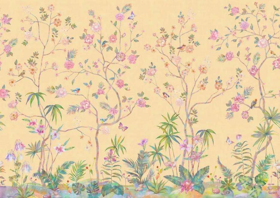 New Chinese style rural hand-painted flowers and birds rose flower beautiful mural wallpaper wallpaper