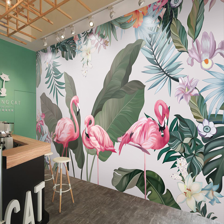 The flamingo wallpaper background wall paper tropical rainforest plants wall mural cloth hotel home stay facility