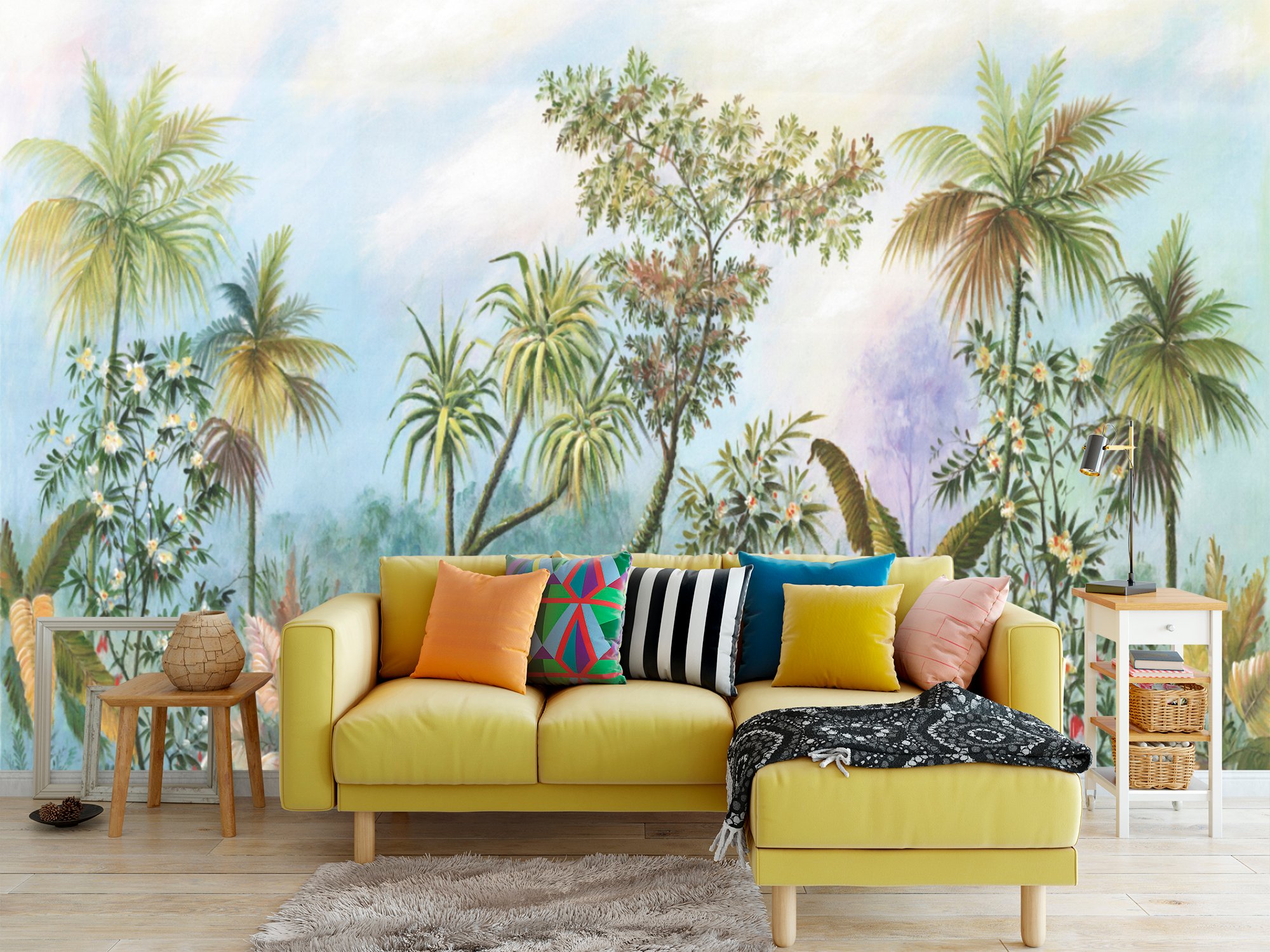 After you install the part 1 mural, then align the part 2 mural with the part 1 mural installed on the wall and paste the part 2 mural, then cut off the overlap of the two panels with knife and mural. Peel off the cut part and level off surface with a scraper.