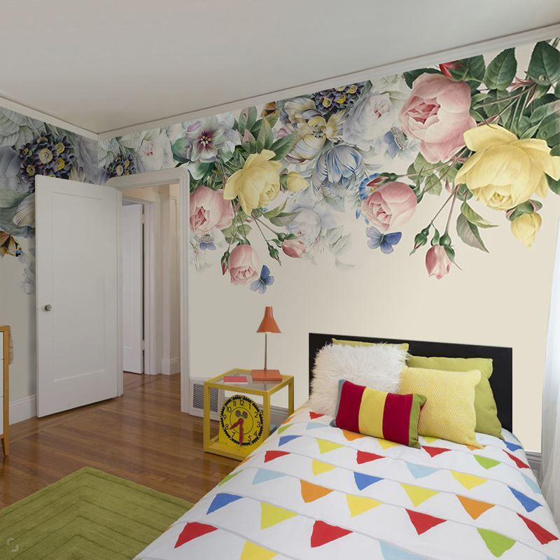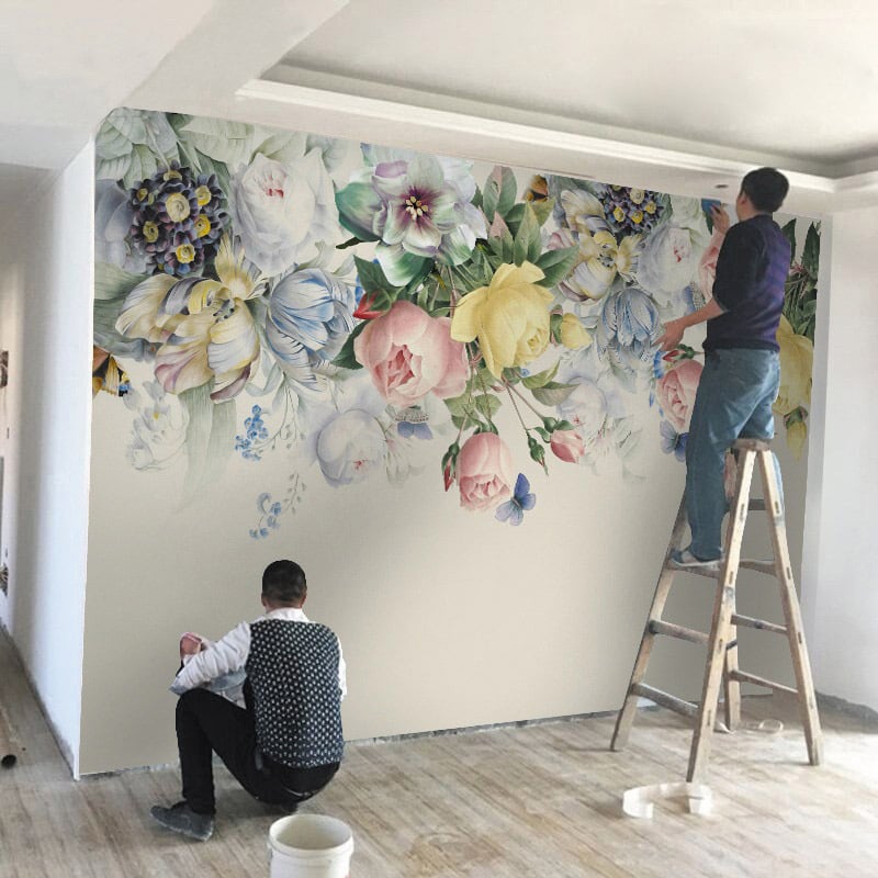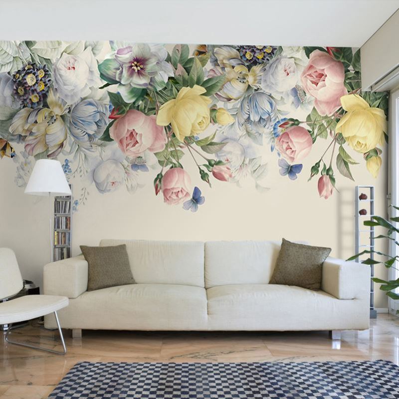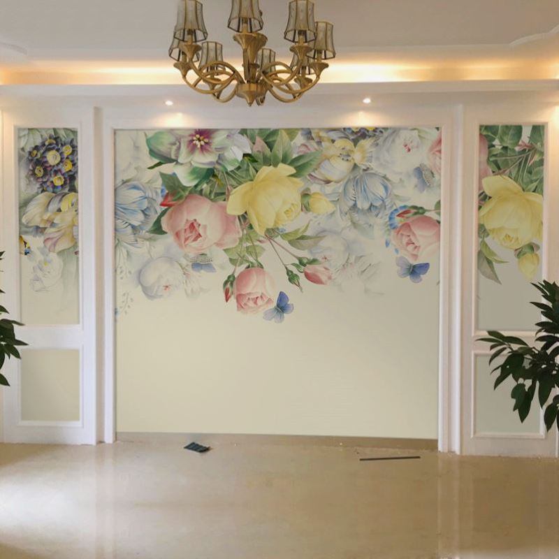 Contemporary and contracted rural style TV setting wall tracery wall mural cloth custom flowers