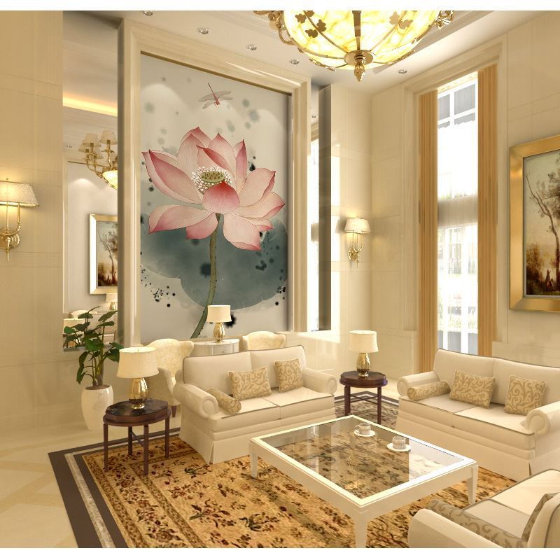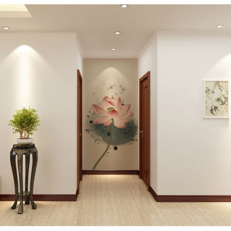 New Chinese style hand-painted wallpaper ink lotus sitting room corridors porch screen background murals